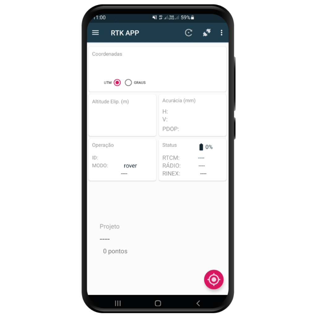 O receptor GNSS fornece mais flexibilidade de trabalho com o aplicativo RTK APP, disponível no sistema Android a partir da versão 8.0