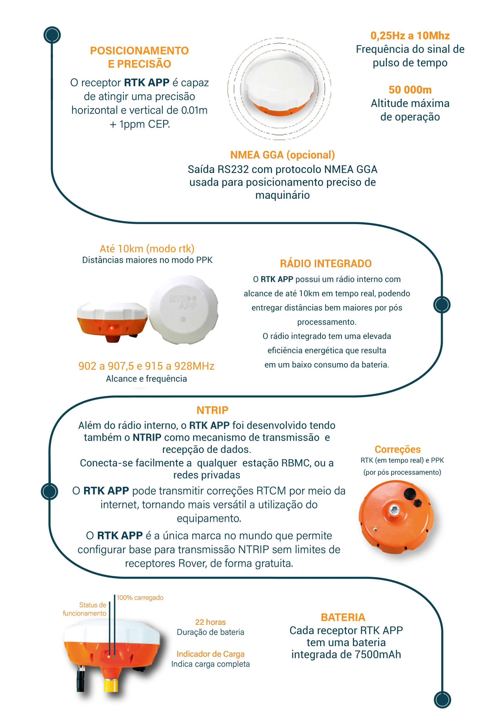 O RTK APP é um receptor GNSS de duas frequências desenvolvido pela indústria brasileira de tecnologia Geocontrol e devidamente homologado pela ANATEL.