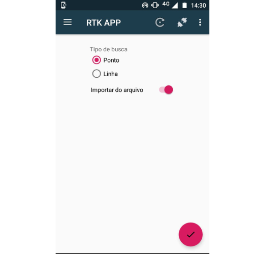 Parear o RTK → Criar o projeto → Ir em Ponto ou Linha → Importar do arquivo → Buscar o arquivo que vai trabalhar → Clicar em Salvar.