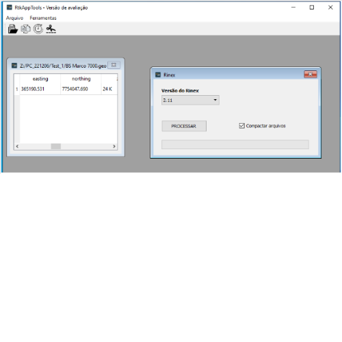 Abrir o arquivo .geo → Clicar em Rinex → Escolher a versão → Compactar arquivo e Processar.